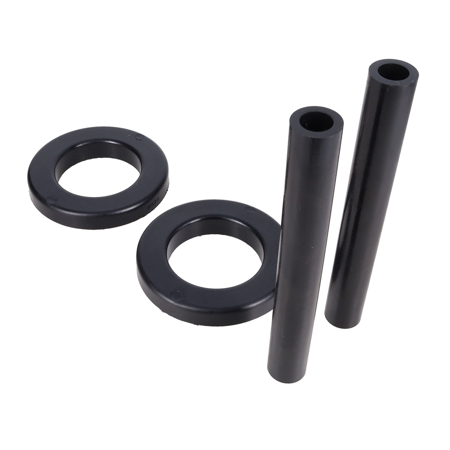 An item that is often overlooked when replacing worn coil springs on your muscle car is the coil spring isolators. Spring isolators see a lot of abuse over their lifetime from road debris, mud and water. Over time they will crack and begin to deteriorate leaving the coil spring to sit metal to metal against the spring pocket causing wear of the pocket and possible noise during the range of motion of the suspension. PSTs coil spring isolators are made from our famous Polygraphite. With our Polygraphite material there will be no more deterioration from the environment and the graphite impregnated poly ensures years and miles of quiet use.