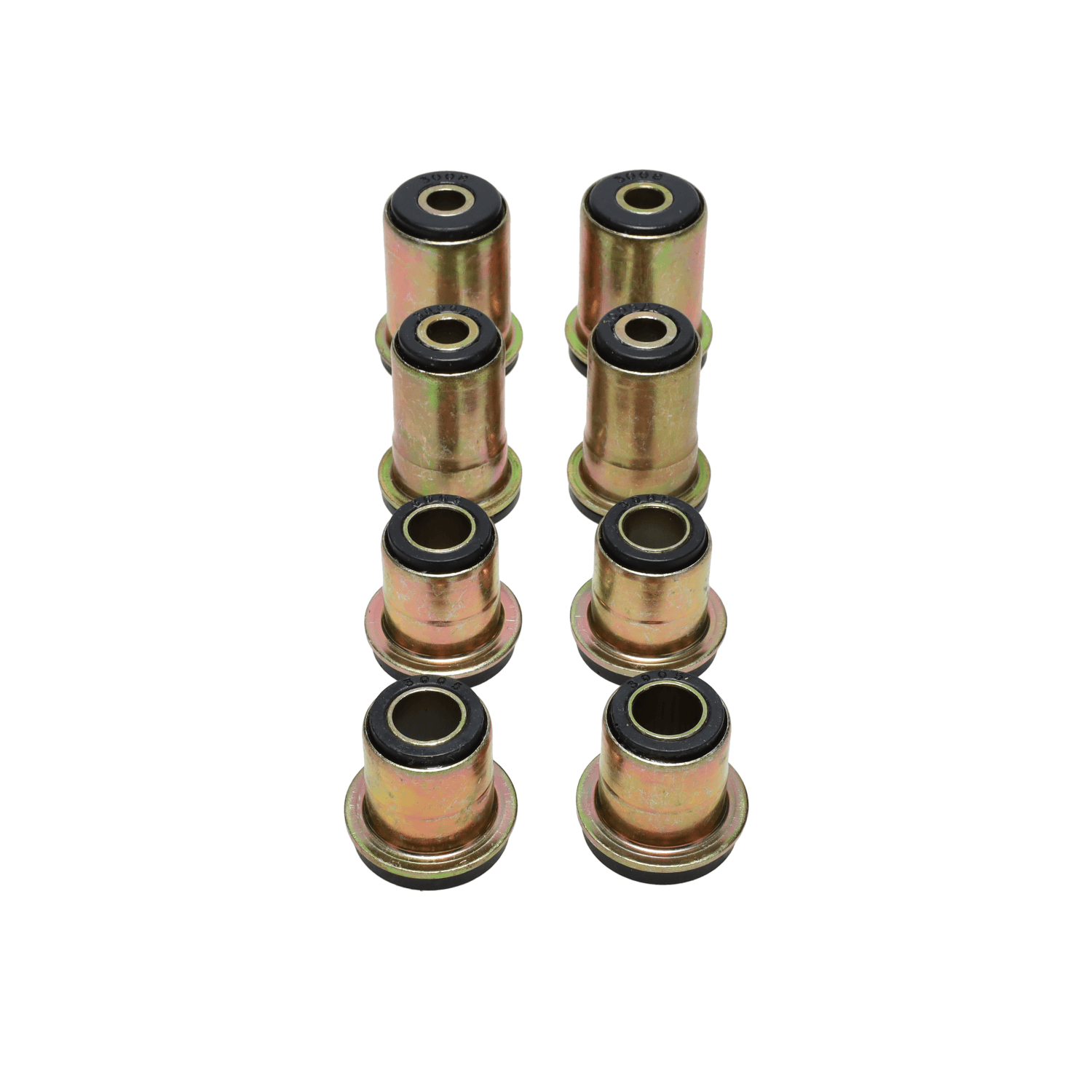 One of the primary problem areas in classic muscle car suspensions is the use of rubber bushings. They were cheap to manufacture for mass production and provided isolation from road noise and vibration, but rubber has a significant tradeoff its relatively soft durometer (hardness) allows for significant deflection of the chassis components under load. The rubber bushings twist and deform as the suspension components rotate, causing premature wear and unpredictable handling. Rubber eventually dry rots when exposed to the elements and degrades in the presence of grease and oil.